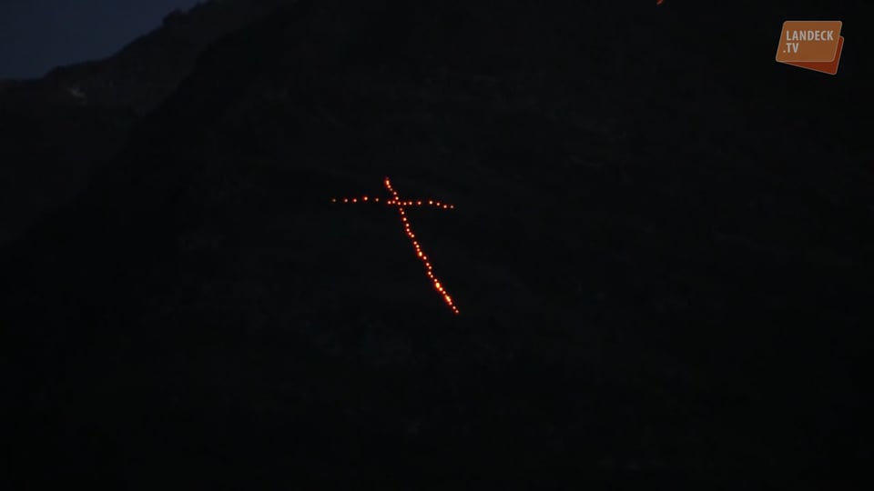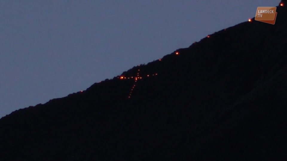 Am Herz Jesu-Sonntag wurden im Talkessel von Landeck wieder die traditionellen Bergfeuer entzündet. Während die Grinner Musikanten im Pavillon unter ihrem Kapellmeister Hanspeter Pixner ein Platzkonzert gaben waren die ersten Feuer schon zu sehen