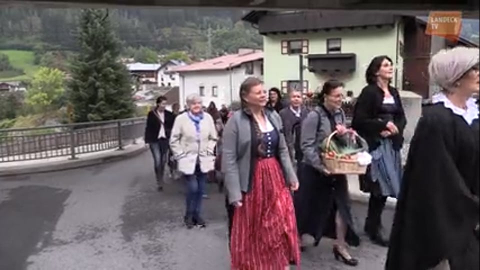 Das Erntedankfest der Landjugend in Pians begann mit dem Einzug vom Gemeindehaus zur Pfarrkirche. Für die musikalische Begleitung sorgte eine Bläsergruppe der Musikkapelle Pians