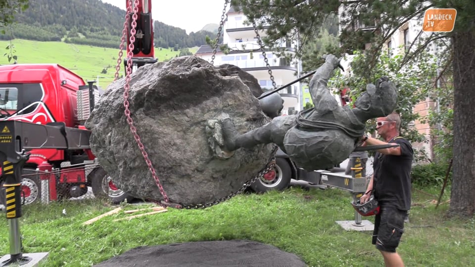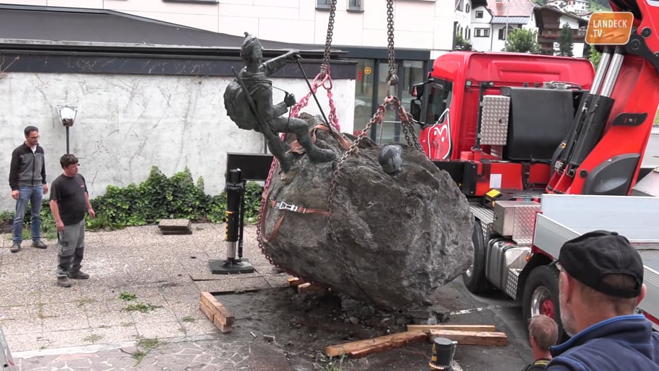 Viele Jahre stand das Kaiserschützen-Denkmal, das Alois Graber errichtet hatte, vor dem Schwarzen Adler in Zams. Nun wurde die Figur nach Nauders übersiedelt.