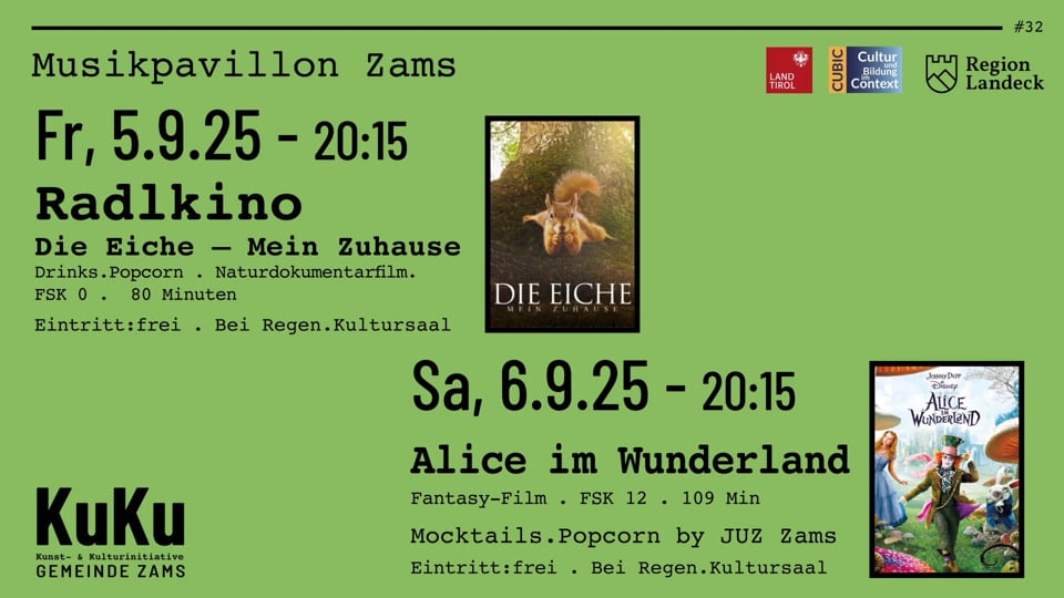 KuKu Zams lädt zum Openair Kino und Wild Live Mobil ein.
