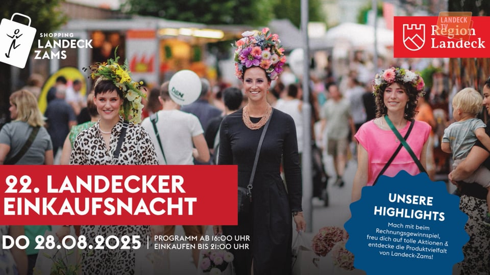 Am Donnerstag, den 28. August 2025 wird Landeck wieder zur Bühne für regionales Können, kreative Einkaufsaktionen und mitreißende Unterhaltung. Die Landecker Einkaufsnacht lädt zum ausgedehnten Bummeln, Gustieren, Probieren – und zum Genießen der besonderen Atmosphäre in der Innenstadt mit einem buntem Rahmenprogramm für Groß und Klein.